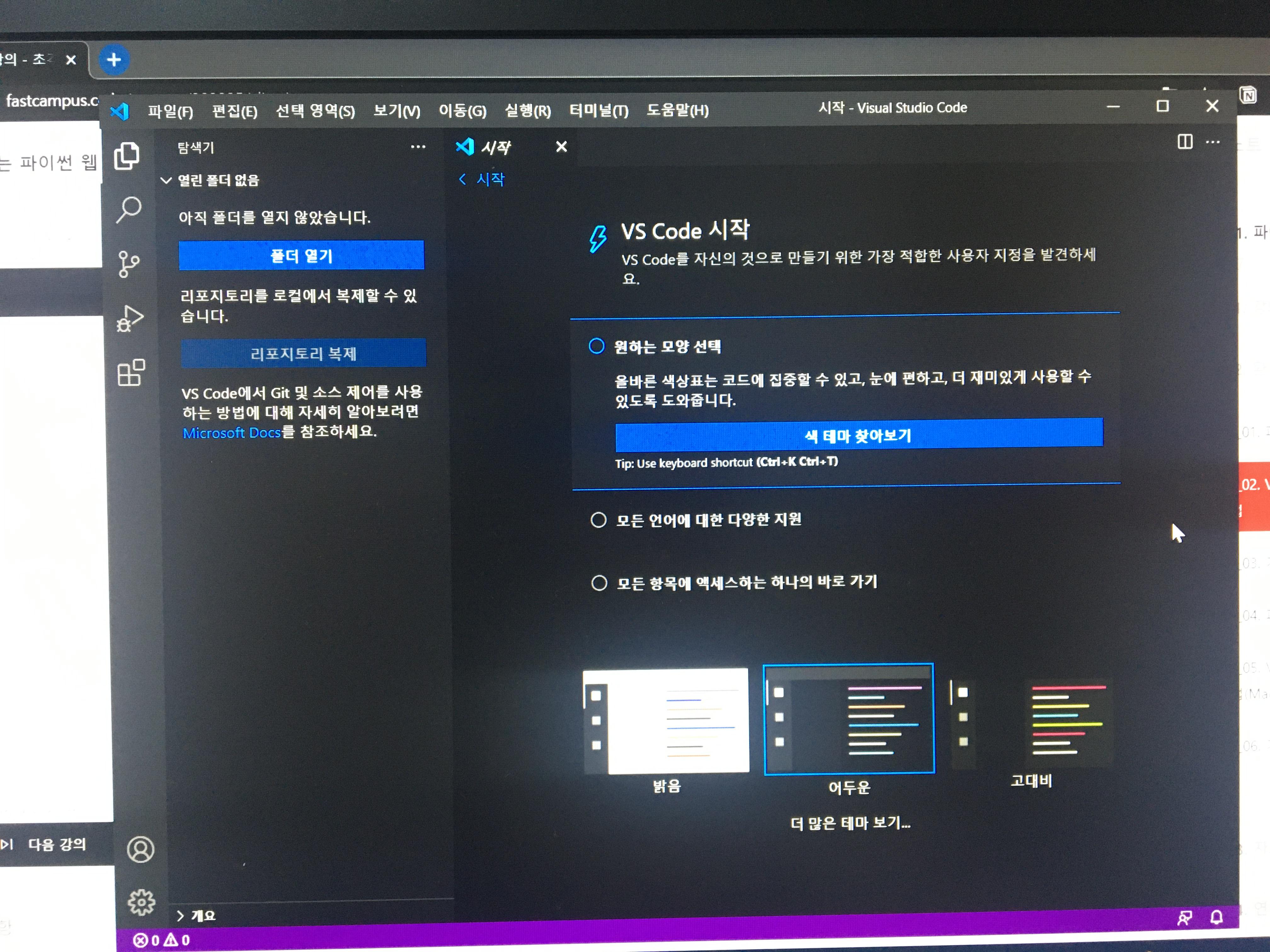 - vscode 첫 화면