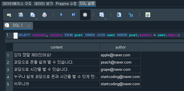 id, title, content, author : post 테이블