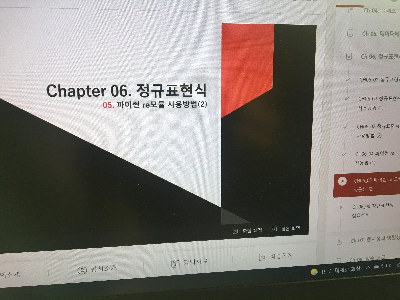 오늘은 정규표현 식 파이썬 re 모듈 사용 방법(2)에 대해서 학습하는 시간을 가졌다. 정신 하나도 없다는 것이다. 숫자가 막 입력 됐다가 전화번호 형식으로 검사하는데 너무 어렵다는 것이다. 어려워서 (1),(2) 소스 코드 다 가져왔다. 저것만 보고 이해하시는 분들은 천직 개발자라고 말씀드리고 싶다. 전 수십차례 봐야 한 문장 이해할 듯하다. 하루하루 너무 어려운 과제처럼 느껴지는 거 왜일까 고민이다.