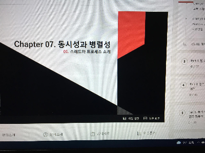 스레드와 프로세스 개념에 대해 학습해보는 시간을 가졌다. 정말 강의하시는 강사님 대단하시다. 이미지도 보여주시고 직접 그려주시면서 설명해주시는데 이해가 쏙쏙 되는 느낌이 든다. 인상 깊었던 클립은 멀티 스레딩 강의일 듯 하다. 따로 실행되는 것처럼 느끼는 것이 아닌 동시에 진행되는 착각을 하게 할 정도로 미세하게 번갈아 가면서 진행하는 그 순간을 보면 참으로 프로세스가 바쁘게 동작한다는 것을 알 수 있는 것 같다.
