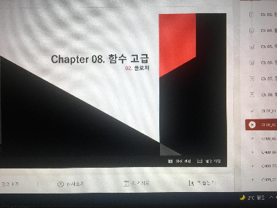 클로저에 대해서 학습해 보는 시간을 가졌다. 클로저란 외부 함수를 참조하여 시작되면서 내부 함수로 들어가서 반환해 주는 것을 말한다. 코드는 나중에 연습하면서 작업해야 할 듯하다. 계속해서 강의 코드 쓸려니 그것도 아닌 것 같고 내 블로그가 아닌 느낌이 들었다. 클로저는 자바스크립트 학습할 때도 헤맸던 부분이기도 하다. 머리로는 이해하는데 막상 코드로 쓸려고 하면 어찌 써야 할지 활용성을 잘 못 해서 많이 어려워했다. 지금도 마찬가지인 듯 하다. 그 당시 이해했을 때는 카페 유리창을 예시로 이해를 했었는데 막상 그게 맞나 의문이 들기도 한다. 밖에서 안이 안 보이고 안에서는 밖이 보이는 상황을 말이다. 함수 안에서 정의되어 외부 함수를 참조하는 개념이라는 것을 이해하고 가야 할 듯하다.
