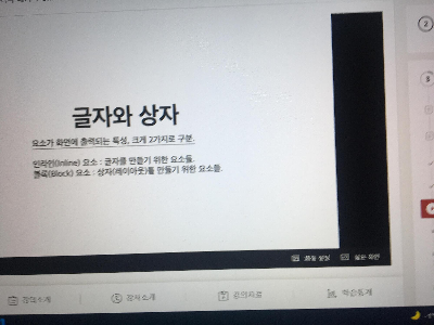 오늘은 글자와 상자에 대해서 학습해 보는 시간을 가졌다. 제목만 봐서는 무슨 내용일까 고민했는데 막상 강의를 들으면서도 혼란이 오다가 처음부터 끝까지 필기 없이 듣다 보니 이해가 되는 부분이 생겨났던 것 같다. 인라인 요소와 블록 요소의 차이점을 살펴볼 수 있었으면 블록은 자유자재면 인라인은 한계가 있고 벗어나지 못하는 점을 볼 수 있었다. 그렇다고 많은 부분이 달라 보이는 것도 아니었으며 실질적으로 이미지를 보면서 이해하는 게 좋은 듯하지만 차마 그림을 그려서 기록할 수가 없기에 생략을 진행하고 글로써 최대한 알아들을 수 있게 작성해보았다.