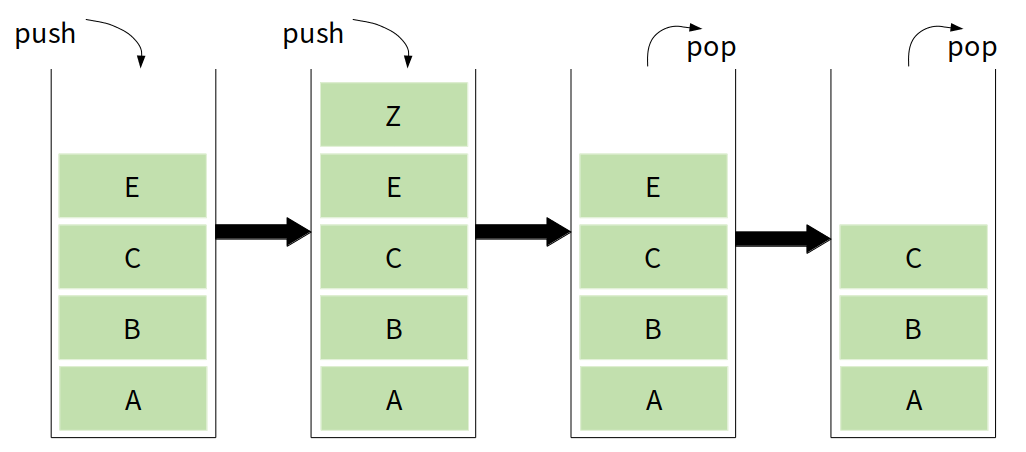 - 새로운 접시가 쌓일 때도 맨 위에서 쌓임